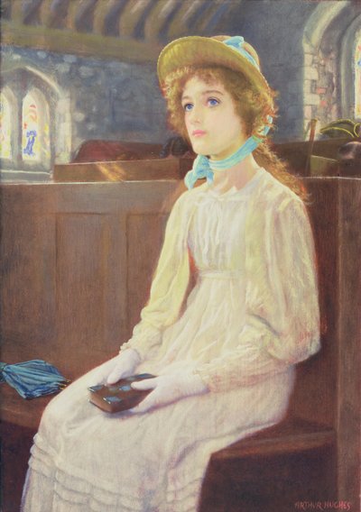 Arthur Hughes (1832-1915) foi um dos mais importantes representantes dos Pré-Rafaelitas, embora nunca se tenha tornado um membro oficial. Na década de 1850 ele foi um dos mais destacados simpatizantes deste movimento e tornou-se conhecido pelas suas cores e desenhos sensíveis e delicados. Arthur Hughes veio da classe média britânica de Londres. No início, frequentou a Escola de Gramática de Tennisons, mas logo demonstrou o seu talento artístico, de modo que a partir de 1846, mudou para a Escola de Design, a escola do pintor belga Alfred Stevens. Aos 15 anos de idade, matriculou-se na "Escola Antiga" da Academia Real. Lá ele entrou em contato com Dante Gabriel Rossetti, outros membros dos pré-rafaelitas como John Everett Millais e Holman Hunt. Este encontro foi decisivo para o desenvolvimento do seu estilo. Em suas obras, é evidente uma percepção elevada do mundo natural, aliada a uma interioridade que se deve à influência de Rosetti.