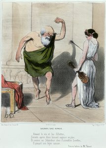 O filho de Glaser, Daumier, veio de um meio familiar em que a pobreza era uma condição permanente. O jovem Daumier já tinha de trabalhar muito quando era criança. Felizmente, o seu extraordinário talento para desenhar foi descoberto e encorajado. Daumier, que também era um talentoso litógrafo e escultor, teve a sorte de ter um sustento relativamente seguro a partir de 1831, graças a uma posição mais ou menos permanente como caricaturista da revista satírica parisiense "La Caricature" e da sua revista de seguimento "Le Charivari". Os famosos colegas de Daumier nestas revistas incluíam Jean Ignace Gérard, chamado "Grandville", e Charles-Joseph Traviès. Os arquétipos desenhados por Daumier, como o burguês burguês Robert Macaire, apontavam para a ocosidade, ganância e misantropia das classes aristocráticas e classe média alta, que se consideravam a "elite", e a sua doçura na pequena burguesia. Uma classe político-económica que, apesar da queda do reino em 1848, a subsequente Segunda República (1848 - 1852), o império de Napoleão III, a "elite" e a "burguesia". (1852 - 1870) e da subseqüente Terceira República estabelecida, ela permaneceu essencialmente inalterada. As críticas cáusticas de Daumier aos governantes e de estupidez o colocaram em conflito com a lei mais de uma vez. Sua famosa caricatura do Rei Louis Philippe, que como guloso ("Gargântua") devora seu povo, levou até a uma pena de prisão em 1832.