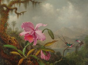 Martin Johnson Heade war ein aus dem Bundesstaat Pennsylvania stammender Maler, der für seine detailgenauen Stillleben in Amerika bekannt war. Mit großer Hingabe und Begeisterung zeichnete er zu Lebzeiten tropische Vogelarten, Blumen, Seen und Salzwiesen nach. Eines seiner beliebtesten Motive war jedoch der Kolibri, dessen Schönheit er auf Reisen immer wieder bewunderte und zeichnete. Als Sohn eines Gemischtwarenhändlers wuchs er in einem kleinen Dorf am Delaware River auf. Eines Tages machte er die Bekanntschaft mit dem Maler Edward Hicks. Dieser lebte wenige Kilometer von Heades Heimatort entfernt. Edward Hicks erkannte die künstlerische Begabung des kleinen Martin und gab ihm fortan Unterricht in Malerei. Zu Heades ersten Kunstwerken zählte übrigens ein Porträt aus dem Jahr 1839.