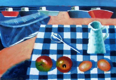 Red boat Iona (acrylic on canvas)