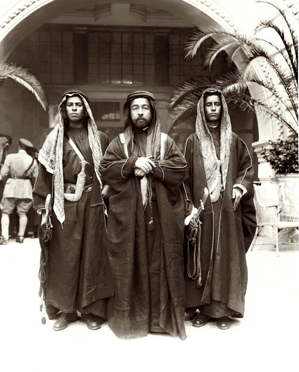 Sherif Abdullah (centro) com o Sheikh Jwayber el-Otaiby (direita) da Tribo Otaibeh, 1921(Sherif Abdullah (centre) with Sheikh Jwayber el-Otaiby (right) of the Otaibeh Tribe, 1921 )A. Reid |