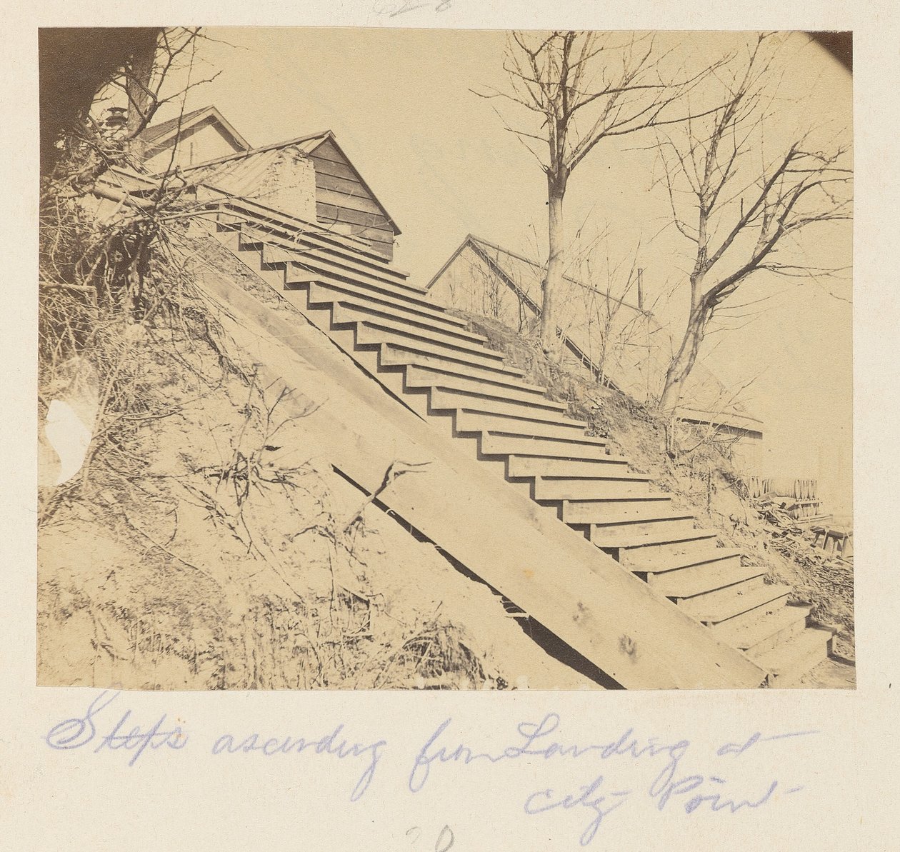 Degraus que sobem do desembarque em City Point(Steps ascending from Landing at City Point)A.J. Russell(Photographer) |