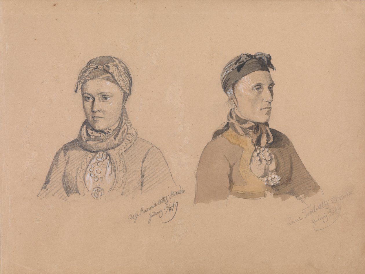 Aase Rasmusdatter A praia e Anna Troelsdatter Kittelsviken(Aase Rasmusdatter Stranden and Anna Troelsdatter Kittelsviken )Adolph Tidemand |