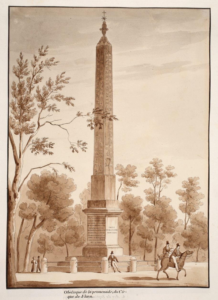 O Obelisco Passeggiata, do Circo da Flora, 1833 (gravura com lavagem marrom)(The Passeggiata Obelisk, from the Circus of Flora, 1833 (etching with brown wash))Agostino Tofanelli |