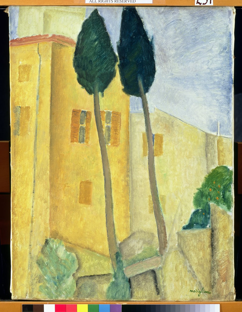 Ciprestes e casa, 1919(Cypress Trees and House, 1919 )Amedeo Modigliani |