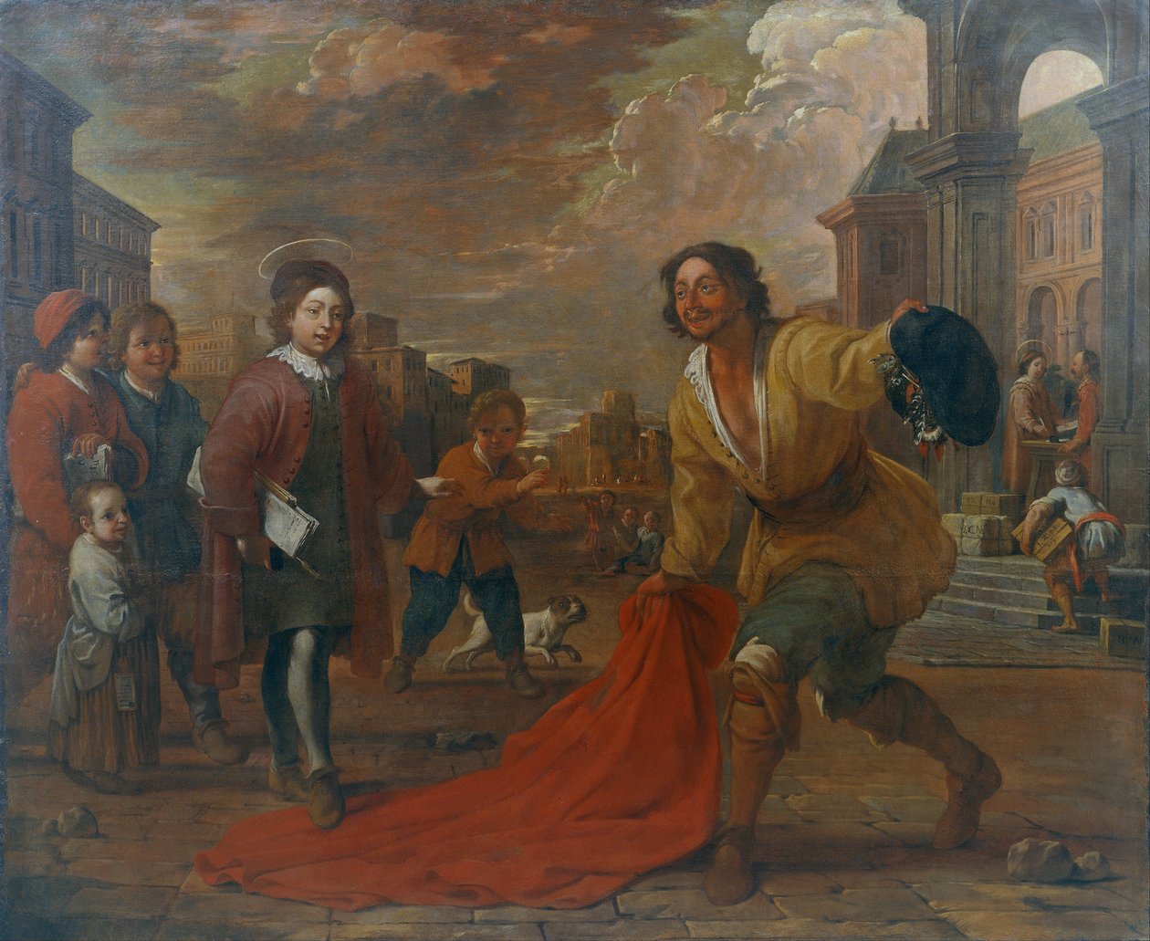 Um homem simples coloca seu manto nos pés de São Francisco quando criança(A Simple Man Lays his Cloak at the Feet of Saint Francis as a Child)Antoni Viladomat |