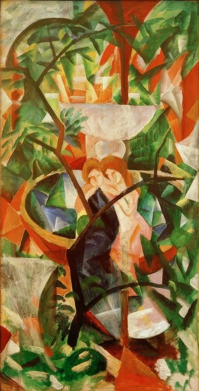 Garota na frente da fonte(Mädchen vor dem Springbrunnen)August Macke |