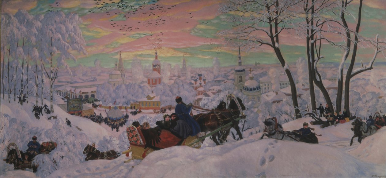 estações · inverno · cavalo · paisagem · pintura · ônibus · neve · geada · festival · carnival · coachman · cena do inverno · celebration · carruagem · cityscape · província · divertimento · rússia · sledge · sleigh · carnaval · chicote · vida da cidade · st. petersburg · poesia · fasching · troika · shrove tuesday · kibitka · russian painting · end of 19th - early 20th cen. · genre · state russian museum · russian winter · sledge driving · horse driving · sleigh ride driving · yamshik · yamshchik · coachee · coachy · winter landscape · shrove-tide · shrovetide · maslenitsa · butter week · pancake week · cheesefare week · kustodiev · boris michaylovich 1878-1927 · Fine Art Images/Heritage Images |
