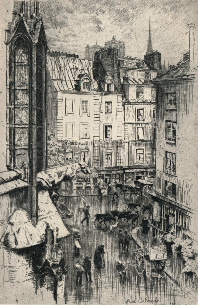 exterior · cidade · estrada · edifício · edifícios · povos · ocupado · casas · arquitetura · artes · país · francês · france · paris · arte · pista · avenida · posição · século · conceito · fora · monocromÁtico · preto branco · preto e branco · ile-de-ile-de-france · 1910s · 20o século · etching · charles jouas · jouas · charles · backstreets · rue galande · The Print Collector/Heritage Images |