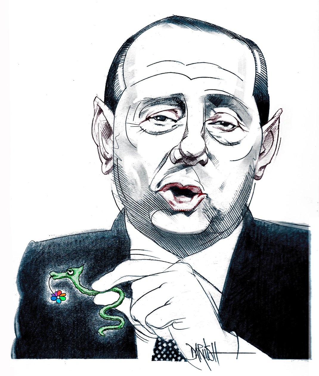 Silvio Berlusconi, 2024 (desenho digital a lápis de cor)(Silvio Berlusconi, 2024 (digital coloured pencil drawing))Dariush Radpour |