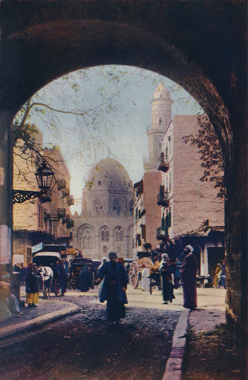 ao ar livre · scenic · povos · universidade · ocupado · marco · religioso · arquitetura · mosque · archway · arco · instrução · o cairo · egipto · religião · vista · máscara · islam · islamic · minaret · século · conceito · twenties · cena da rua · publicação · característica architectural · 10o século · décimo século · povos do fundo · 1920s · 20o século · view through · al-azhar university · e.n.a · geographical magazine · al-azhar mosque · The Print Collector/Heritage Images |