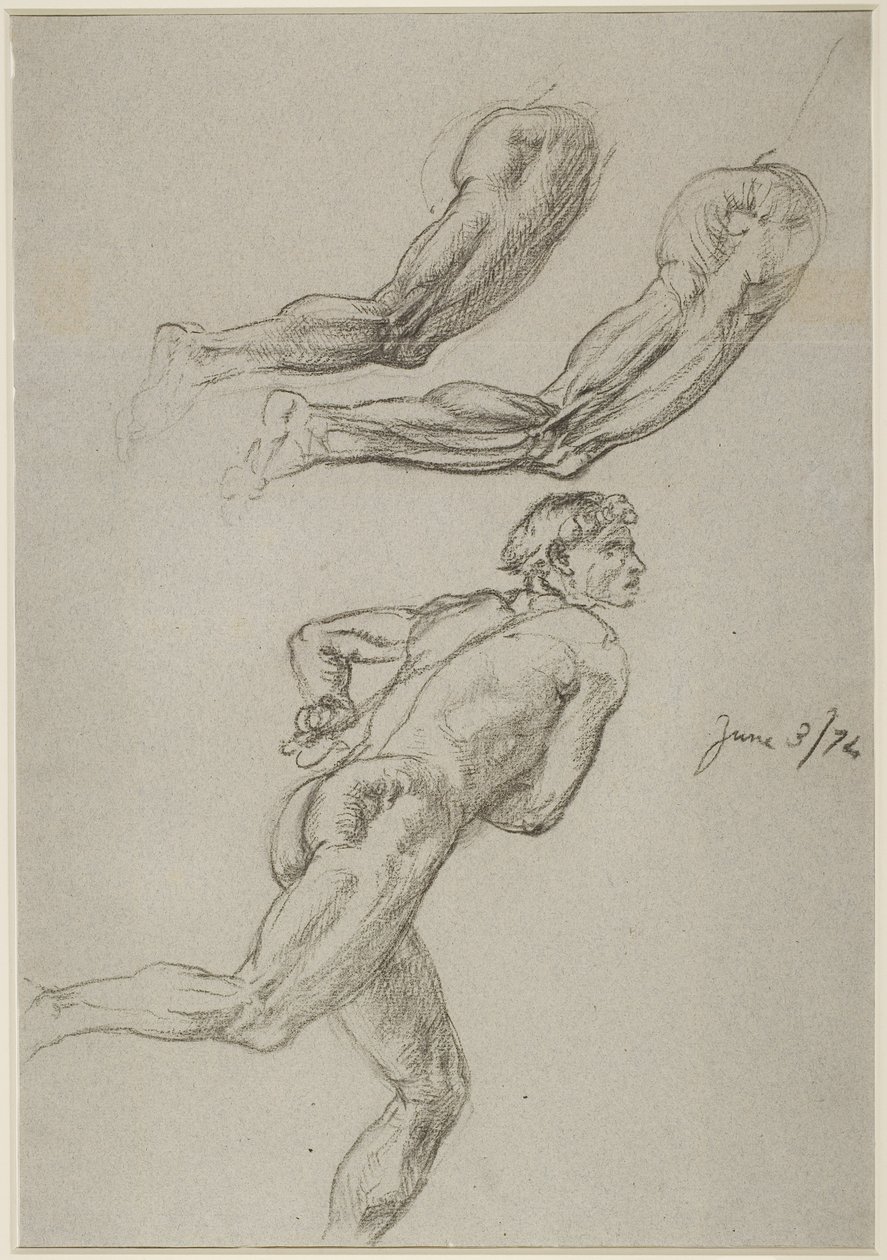 Desenho de vida de um homem correndo (giz no papel)(Life Drawing of a Man Running (chalk on paper))Edward John Poynter |