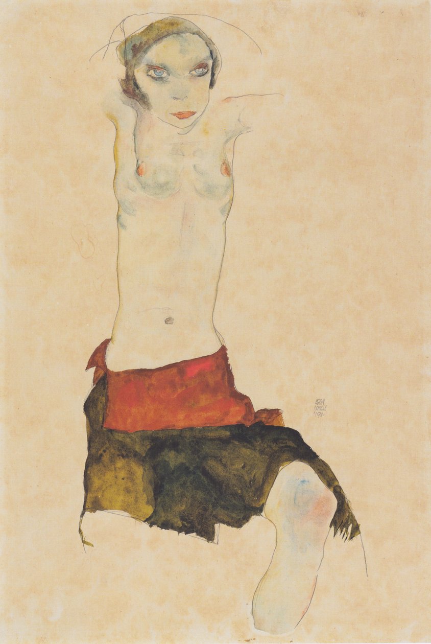 Garota seminua sentada(Halbnacktes sitzendes Mädchen)Egon Schiele |