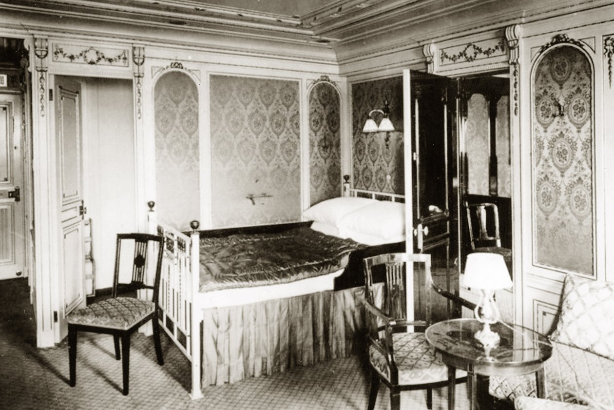 Cabine B-58 a bordo do Titanic, decorada no estilo de Luís XVI, 1912(Stateroom B-58 onboard the Titanic, decorated in Louis XVI style, 1912 )English Photographer |