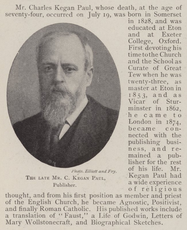O falecido Sr. C Kegan Paul, Publisher(The late Mr C Kegan Paul, Publisher )English Photographer |