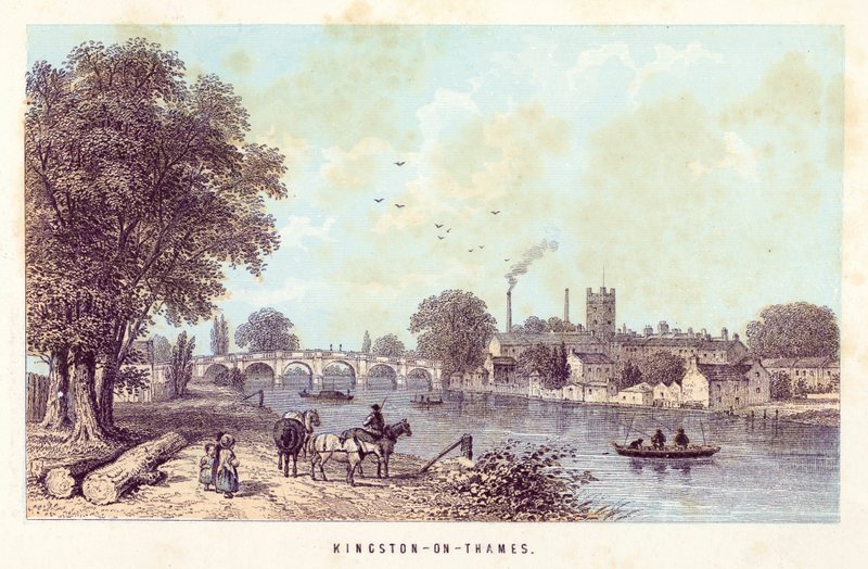 Rio Tamisa: Kingston-on-Thames (gravura colorida)(River Thames: Kingston-on-Thames (coloured engraving))English School |