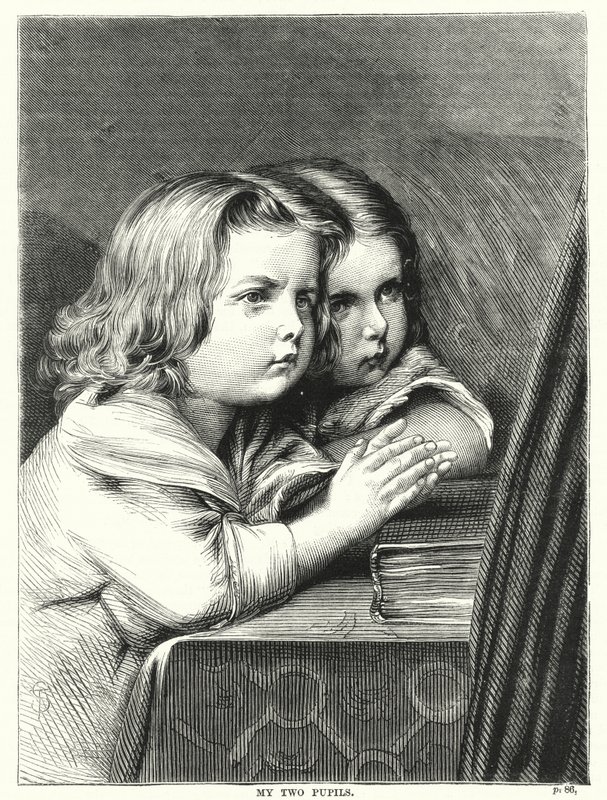 Os meus dois alunos (gravura)(My two pupils (engraving))English School |
