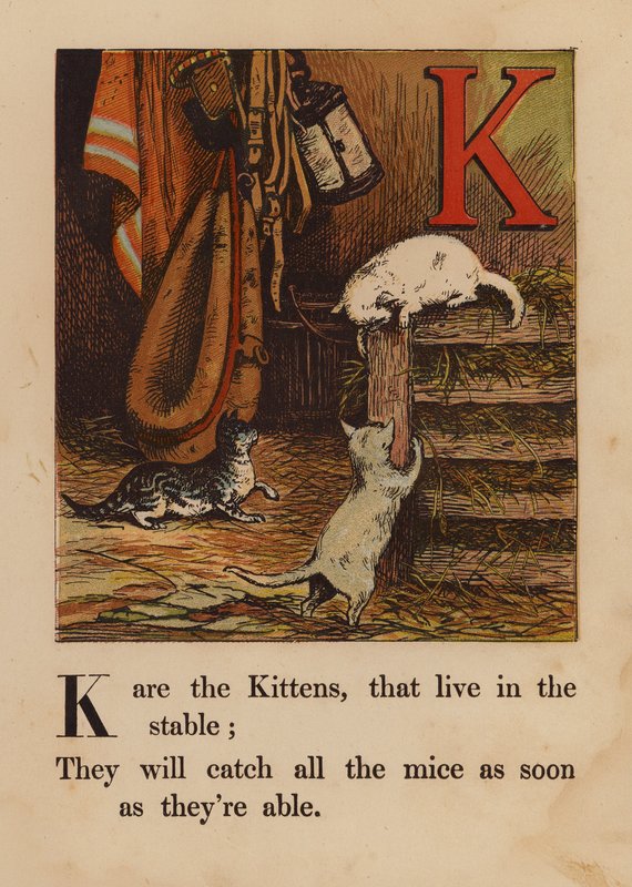 K, Gatinhos (gravura a cores)(K, Kittens (coloured engraving))English School |