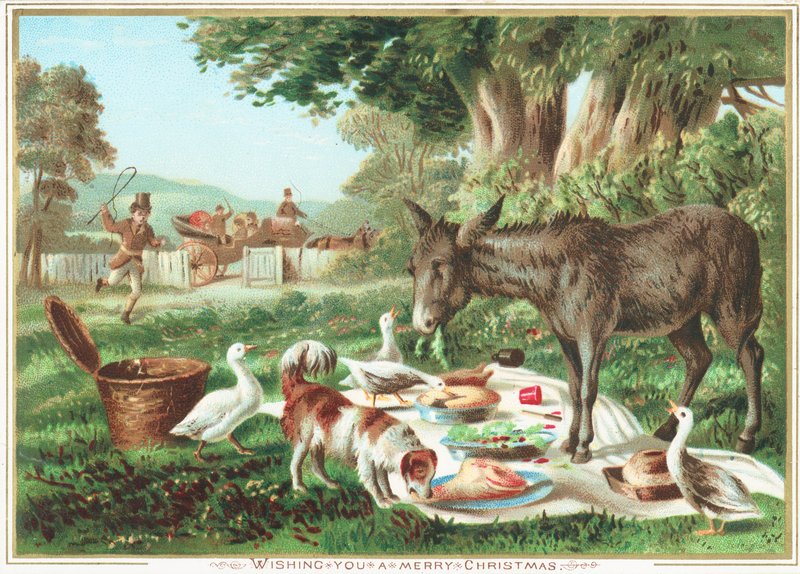 Animais comendo o piquenique, cartão de Natal(Animals eating the picnic, Christmas Card )English School |