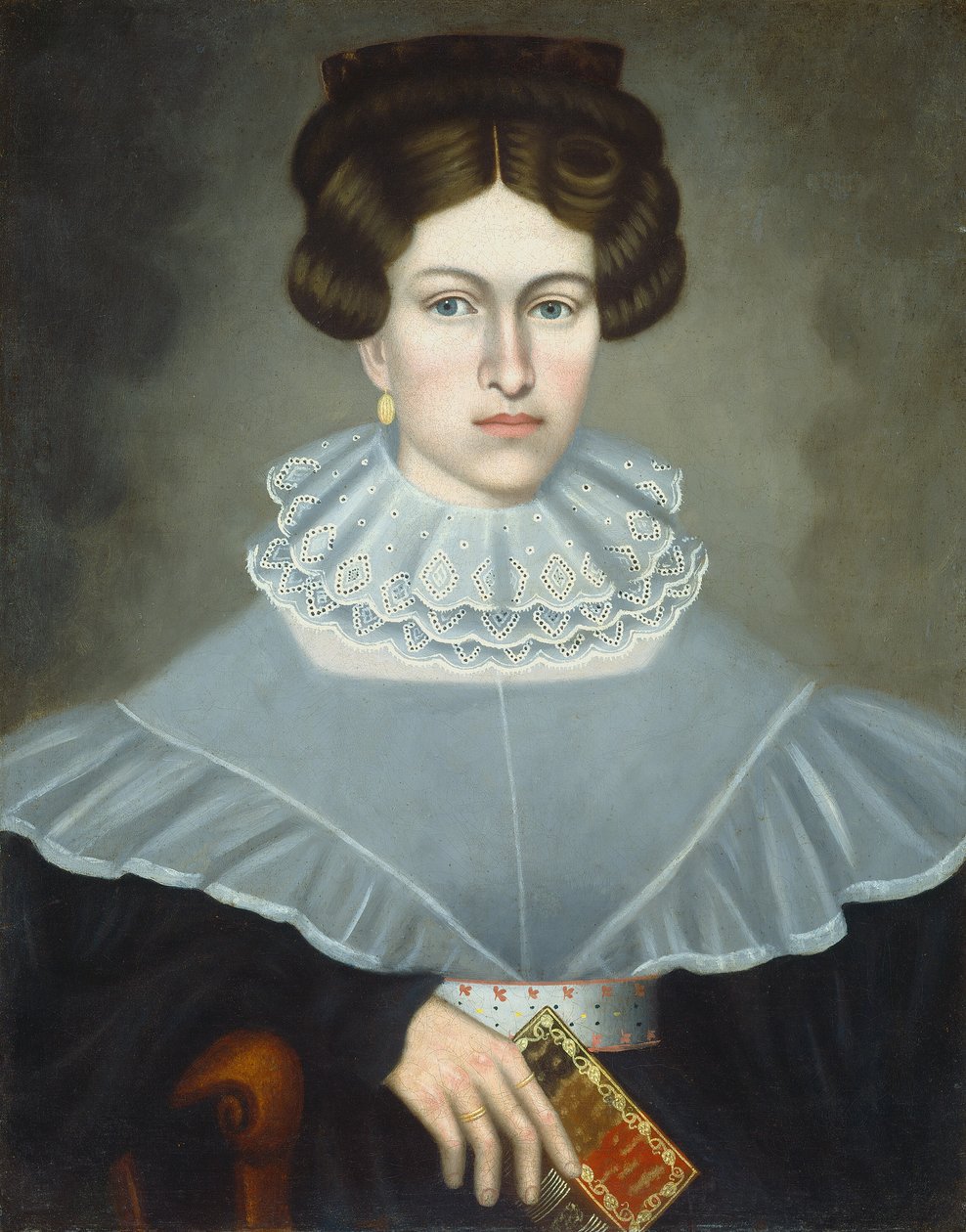 Mulher segurando um livro, c. 1835.(Woman Holding a Book, c. 1835. )Erastus Salisbury Field |