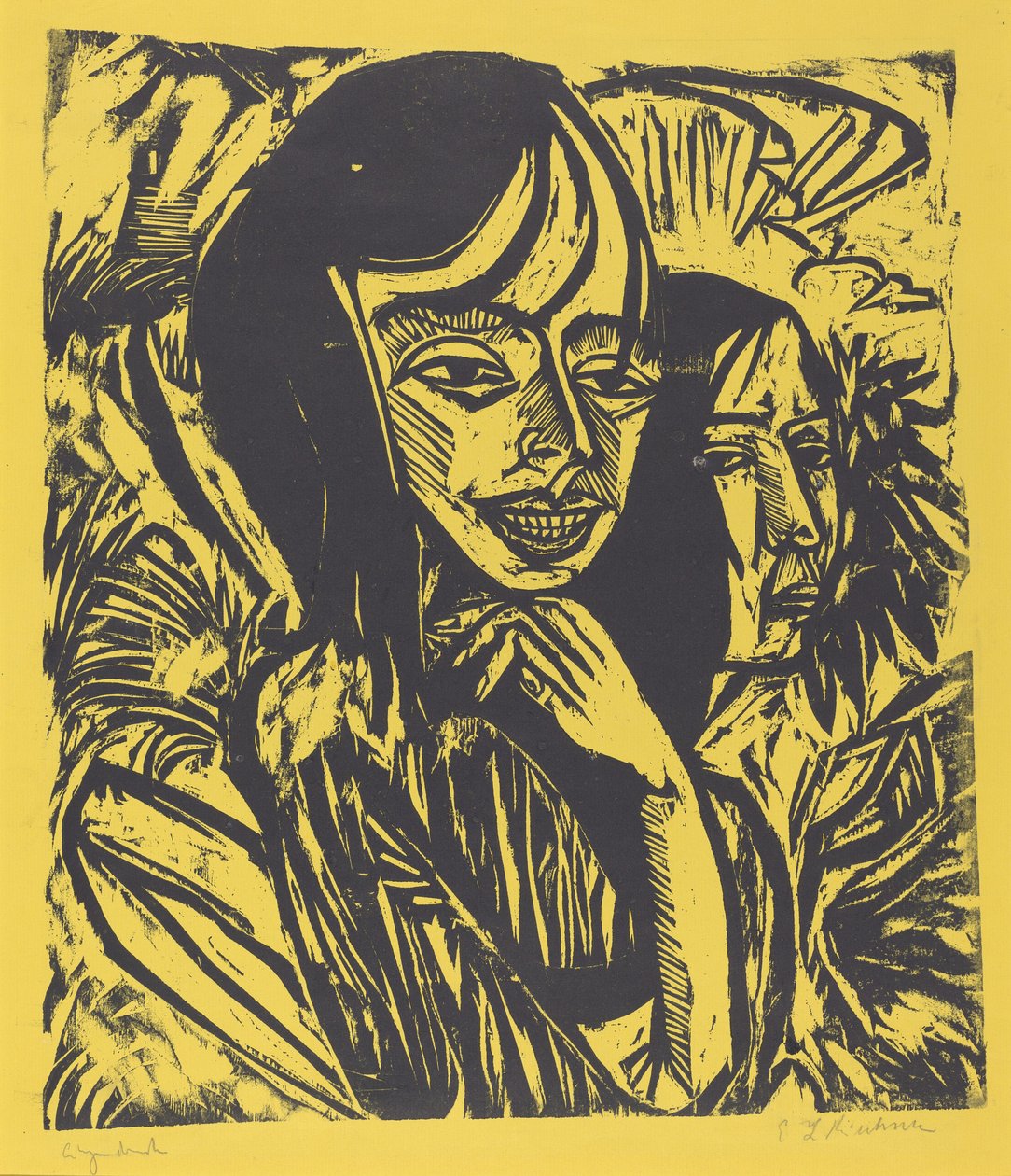 germany · retrato · fêmea · sorrir · povos · cara · menina · meninas · alemão · artes · país · corpo · corpos · arte · console · geografia · posição · século · sorriso · conceito · 20o século · mar de báltico · ernst kirchner · ernst ludwig kirchner · kirchner · ernst · fehmarn · heritage art · print · kirchner · ernst ludwig · die brucke · woodcut in black on yellow paper · Heritage Art/Heritage Images |