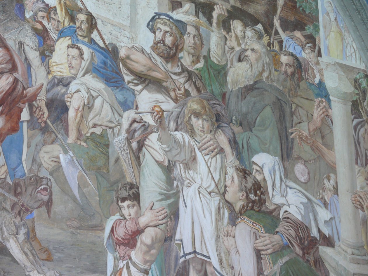 Afresco representando William Tell e seu filho(Fresco depicting William Tell and his son)Ernst Stückelberg |
