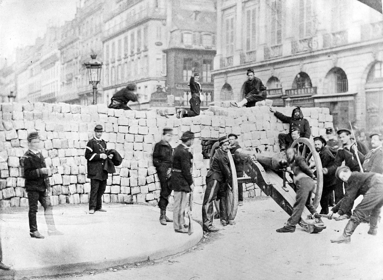Barricada e soldados na Place Vendôme durante o Cerco de Paris, 1870(Barricade and Soldiers in the Place Vendôme during the Siege of Paris, 1870 )French Photographer |