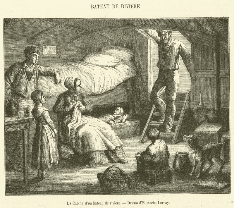 Cabine de um barco fluvial (gravura)(La Cabine d'un bateau de riviere (engraving))French School |