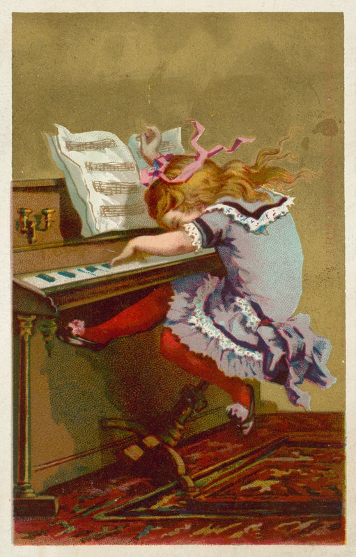 Rapariga a tocar piano (chromolitho)(Girl playing a piano (chromolitho))French School |