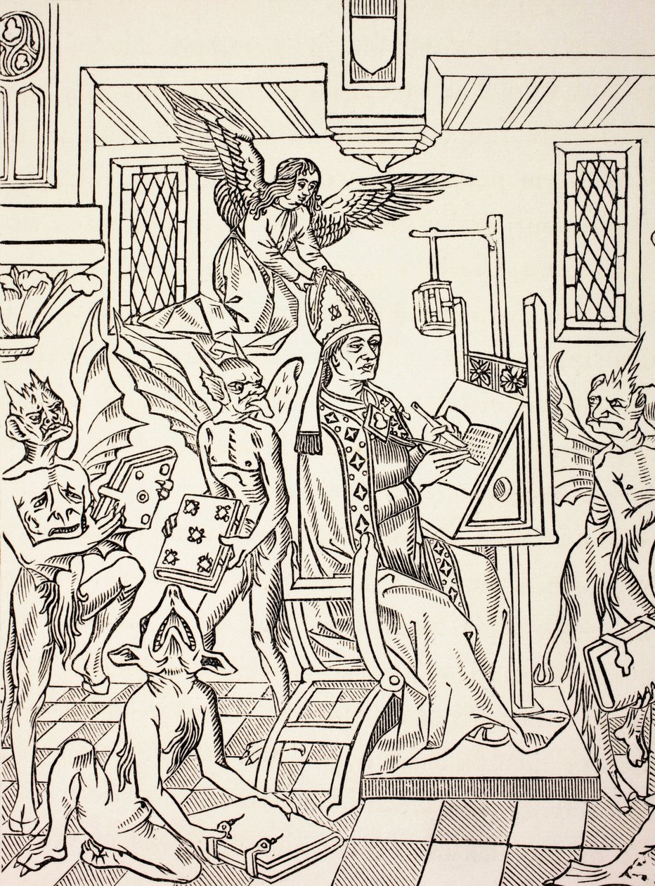 Um padre pede que Deus o ajude em sua ortodoxia, enquanto ele está cercado por demônios que poderiam levá-lo à heresia, de "Vida Militar e Religiosa na Idade Média", de Paul Lacroix, publicado L(A priest calls for God to aid him in his orthodoxy while he is surrounded by devils which could lead him into heresy, from 'Military and Religious Life in the Middle Ages' by Paul Lacroix, published L)French School |