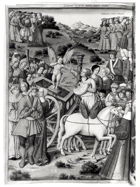 Ms.Fr.594 fol.7v O triunfo do amor, de Les Triomphes por Petrarca (1304-74) 1503(Ms.Fr.594 fol.7v The Triumph of Love, from Les Triomphes by Petrarch (1304-74) 1503 )French School |