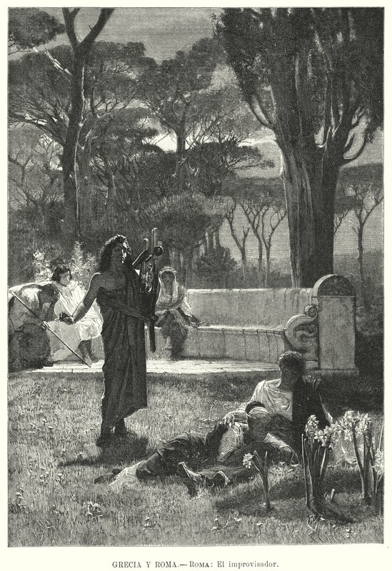 O improvisador, antigo animador romano (litho)(The improvisor, ancient Roman entertainer (litho))German School |