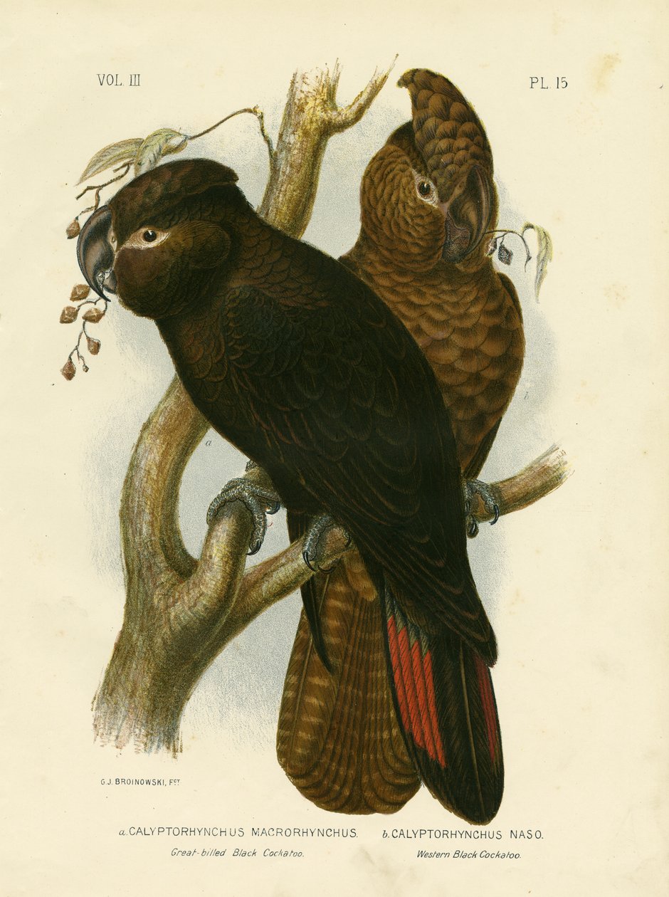 Cacatua-negra-de-bico-grande, 1891(Great-Billed Black Cockatoo, 1891 )Gracius Broinowski |