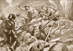 (Temporary Second Lieutenant T.E. Adlam, though wounded, leads his men in a dashing attack, capturing the German position and killing the defenders (litho))Howard K. Elcock |