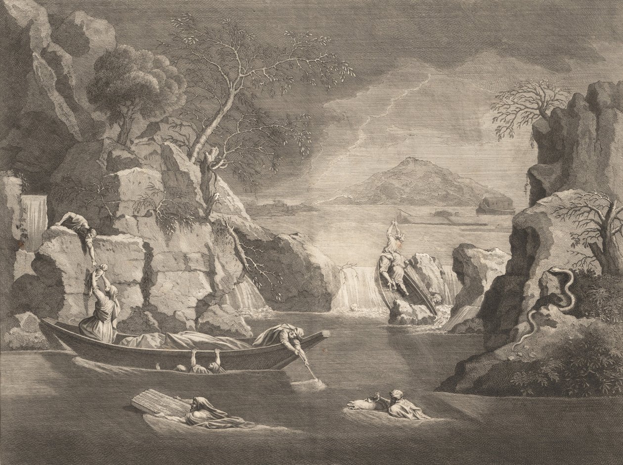 tempo · tempestade · heritage art · jean audran · audran · jean · transporte · transporte · nuvem · nuvens · animal · água · fêmea · mulheres · mulher · povos · macho · homem · homens · religioso · cachoeira · barco · barcos · rochas · rocha · natação · bebê · bebês · país · queda · francês · france · religião · réptil · répteis · serpente · escape · museu · geografia · lighting · prayer · praying · posição · século · inundado · afogar-se · nuvem da tempestade · fujir · nuvens da tempestade · inundação · serpente · fenômenos naturais · flooding · cataract · tempo mau · escapar-se · 17o século · encontrado com · museu metropolitano da arte · o museu metropolitano da arte · testament velho · transporte da água · preto branco · preto e branco · genesis · 18o século · décimo oitavo século · nicolas poussin · engraving · poussin · nicolas · nicholas poussin · Heritage Art/Heritage Images |