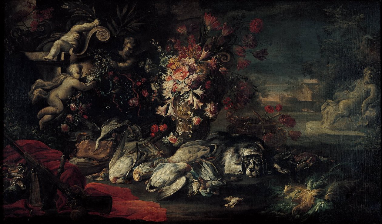 Natureza da morte com equipamento de tiro e flores II(Death nature with shooting gear and flowers II)Jean-Baptiste Oudry |