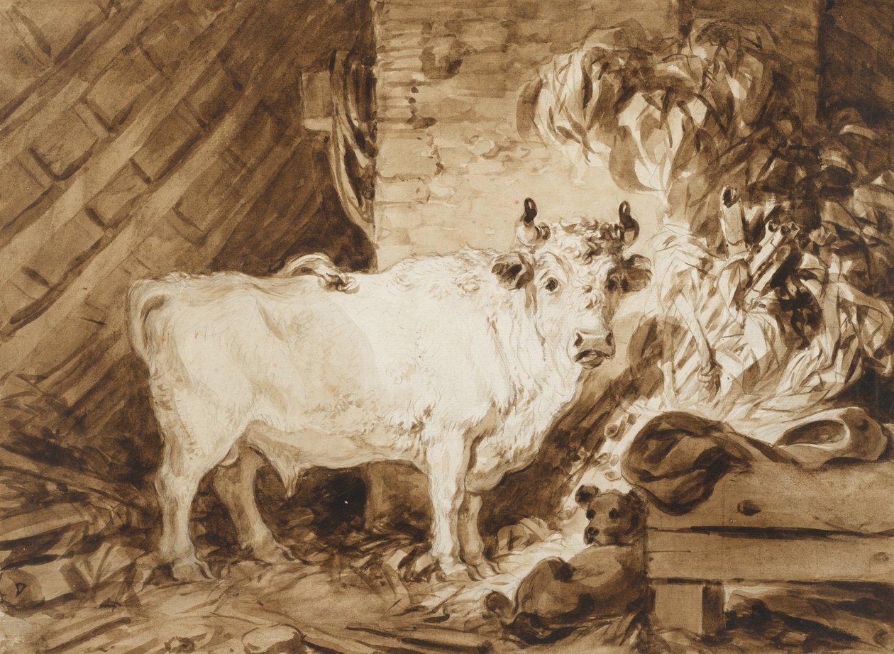 Touro Branco e um Cão em um Estábulo(White Bull and a Dog in a Stable)Jean-Honore Fragonard |