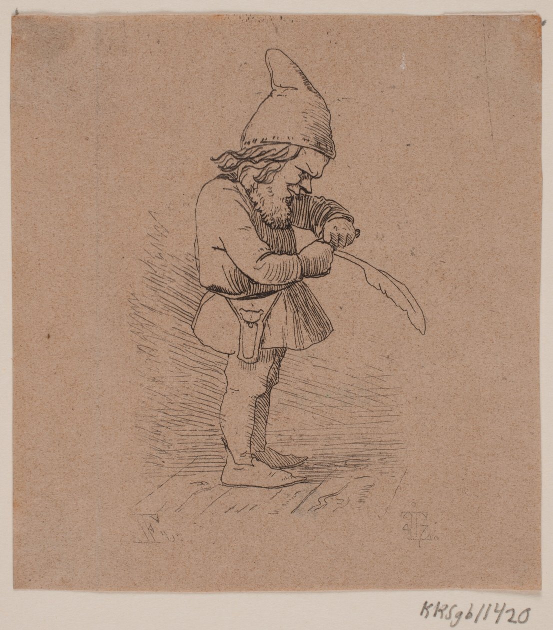 Elfo cortando uma caneta(Nisse, der skærer en pen)Johan Thomas Lundbye |
