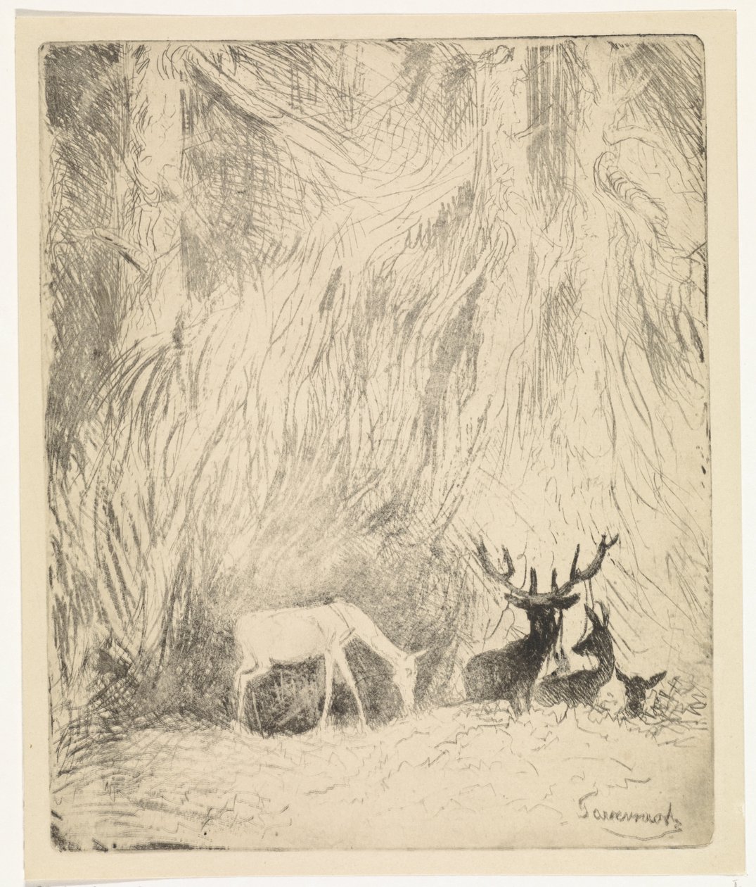Cervos em uma floresta boêmia(Herten in een Boheems woud)Johannes Tavenraat(print maker),Johannes Tavenraat(after own design by) |