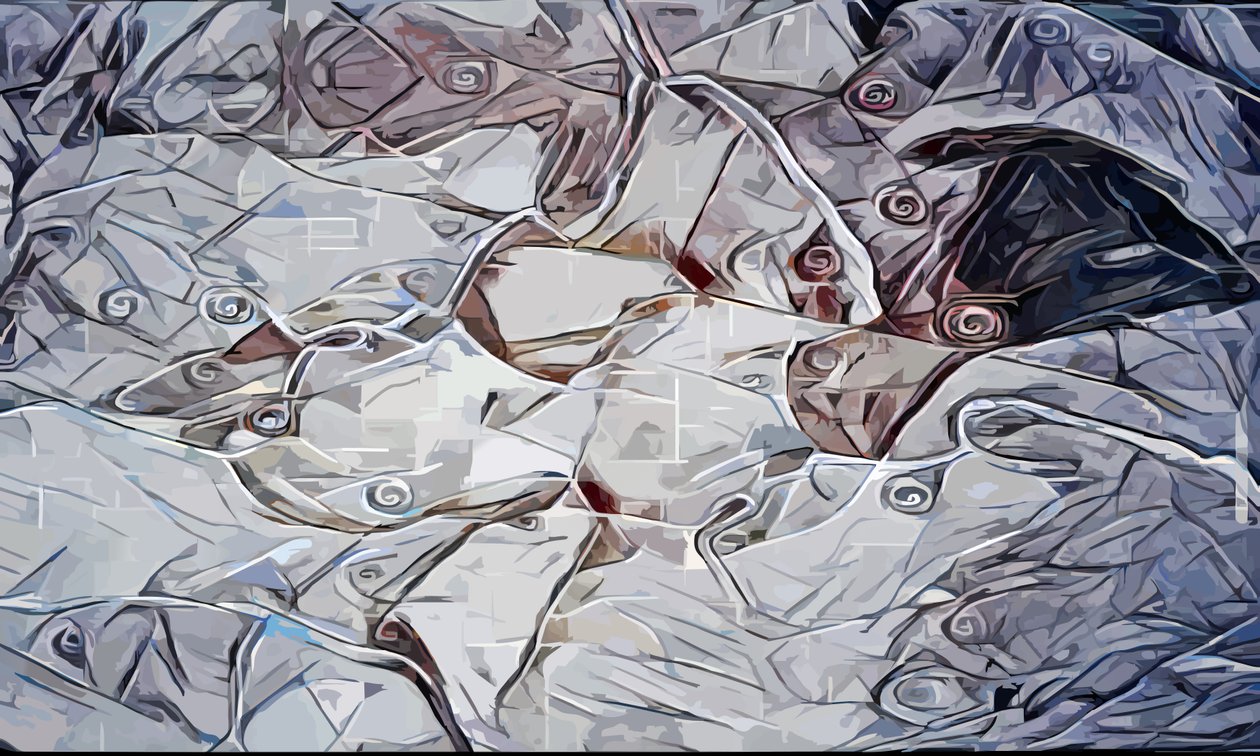 Um pouco escondidos na imagem estão vários rostos a beijarem-se. Ou é sempre o mesmo rosto a beijar-se a si próprio?