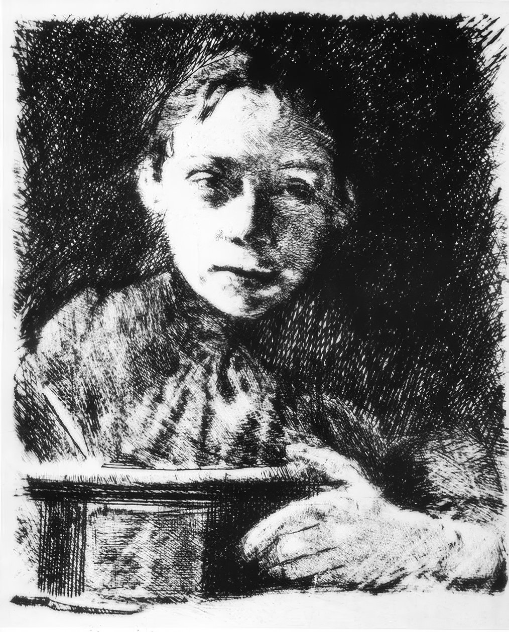 Auto-retrato na prancheta(Selbstbildnis am Reißbrett)Käthe Kollwitz |