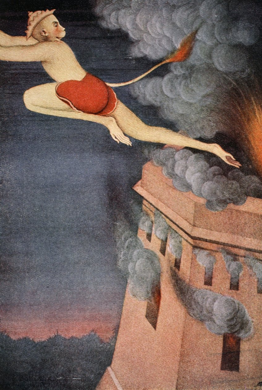 cidade · animal · india · religioso · indian · artes · país · religião · fumo · queimadura · fogo · flama · flamas · cauda · lanka · macaco · deity · deus · hinduism · posição · século · literatura · hindu · legenda · mito · mythology · goddess · escapar-se · hanuman · poema · legendário · 1910s · 20o século · historica graphica collection · noble · vanara · k venkatappa · sister nivedita · nivedita · sister · margaret elizabeth noble · margaret elizabeth · ananda coomaraswamy · coomaraswamy · ananda · venkatappa · k · Historica Graphica Collection/Heritage Images |