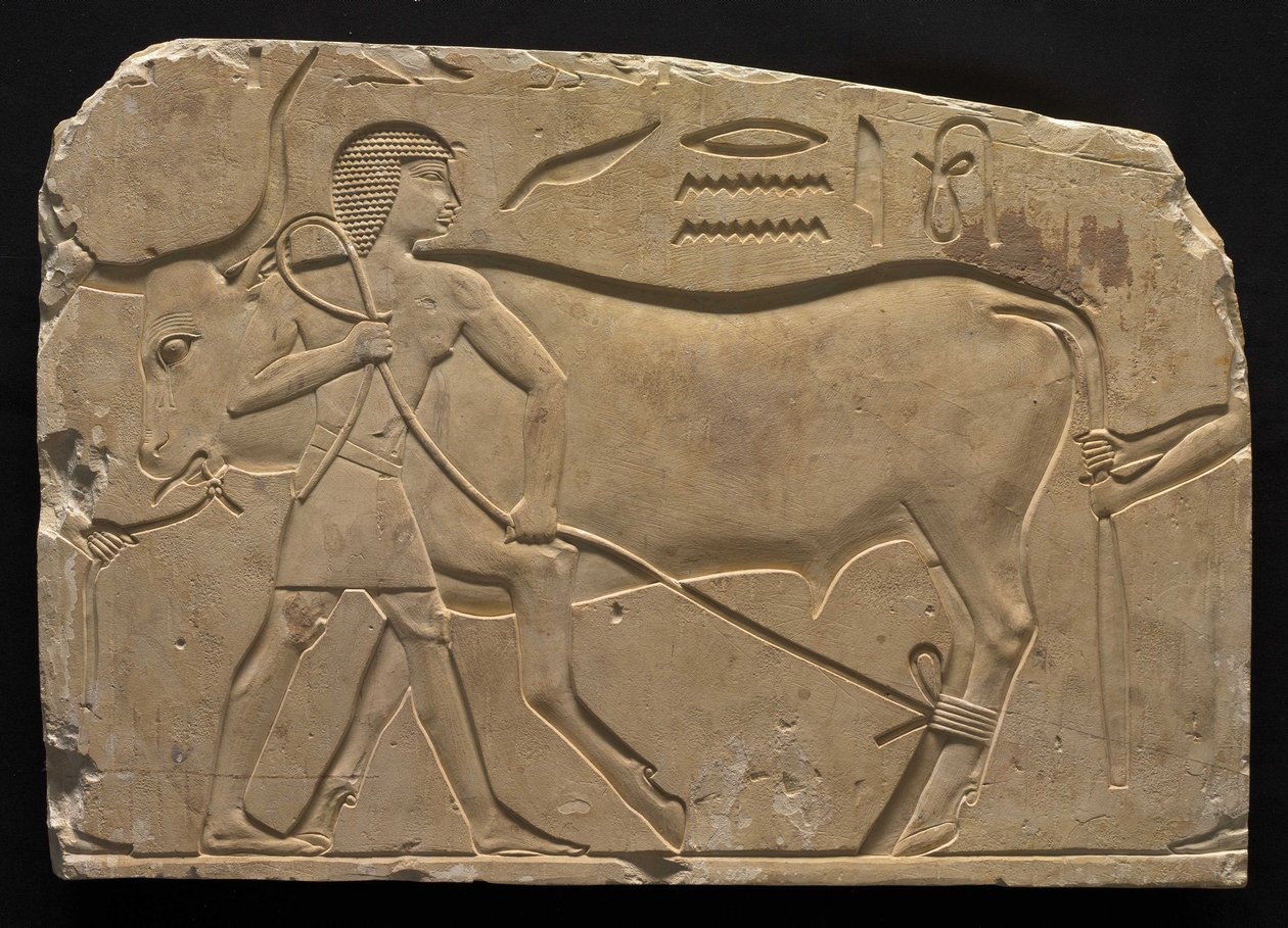 Homens Trussing um boi, 667-647 aC(Men Trussing an Ox, 667-647 BC)Late Period Egyptian |