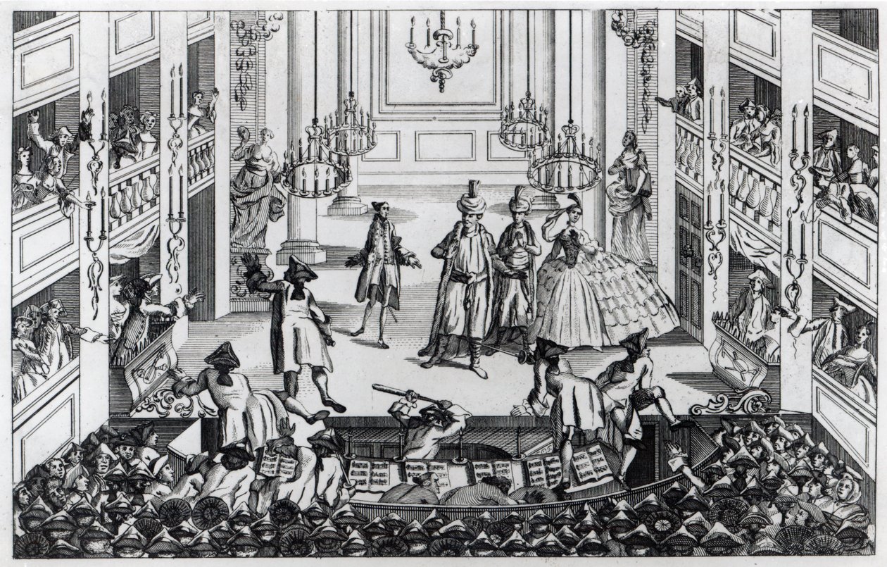 Motim no Covent Garden Theatre em 1763, em consequência de os gerentes se recusarem a admitir metade do preço na Ópera de Artaxerxes(Riot at Covent Garden Theatre in 1763 in consequence of the Managers refusing to admit half-price in the Opera of Artaxerxes )Louis Philippe Boitard |