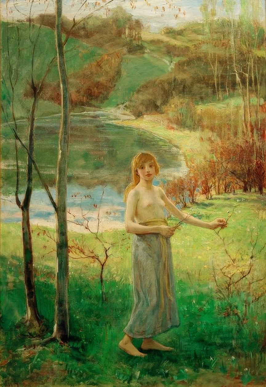 Mulher jovem, colhendo flores(Junge Frau beim Blumenpflücken)Ludwig von Hofmann |