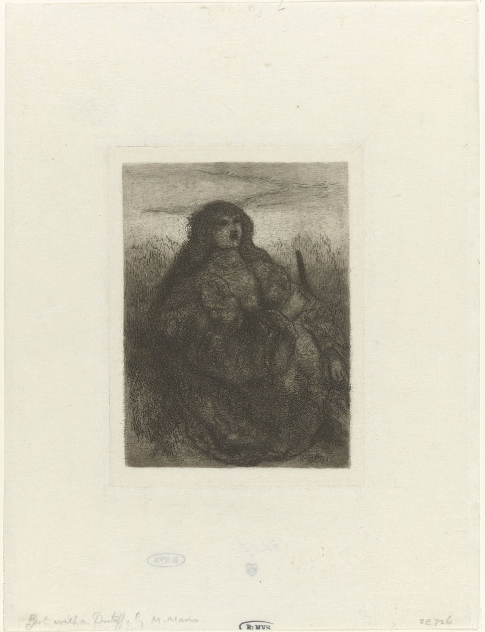 A mulher numa paisagem Mulher com saia giratória(Vrouw in een landschap Vrouw met spinrokken)Matthijs Maris(print maker) |