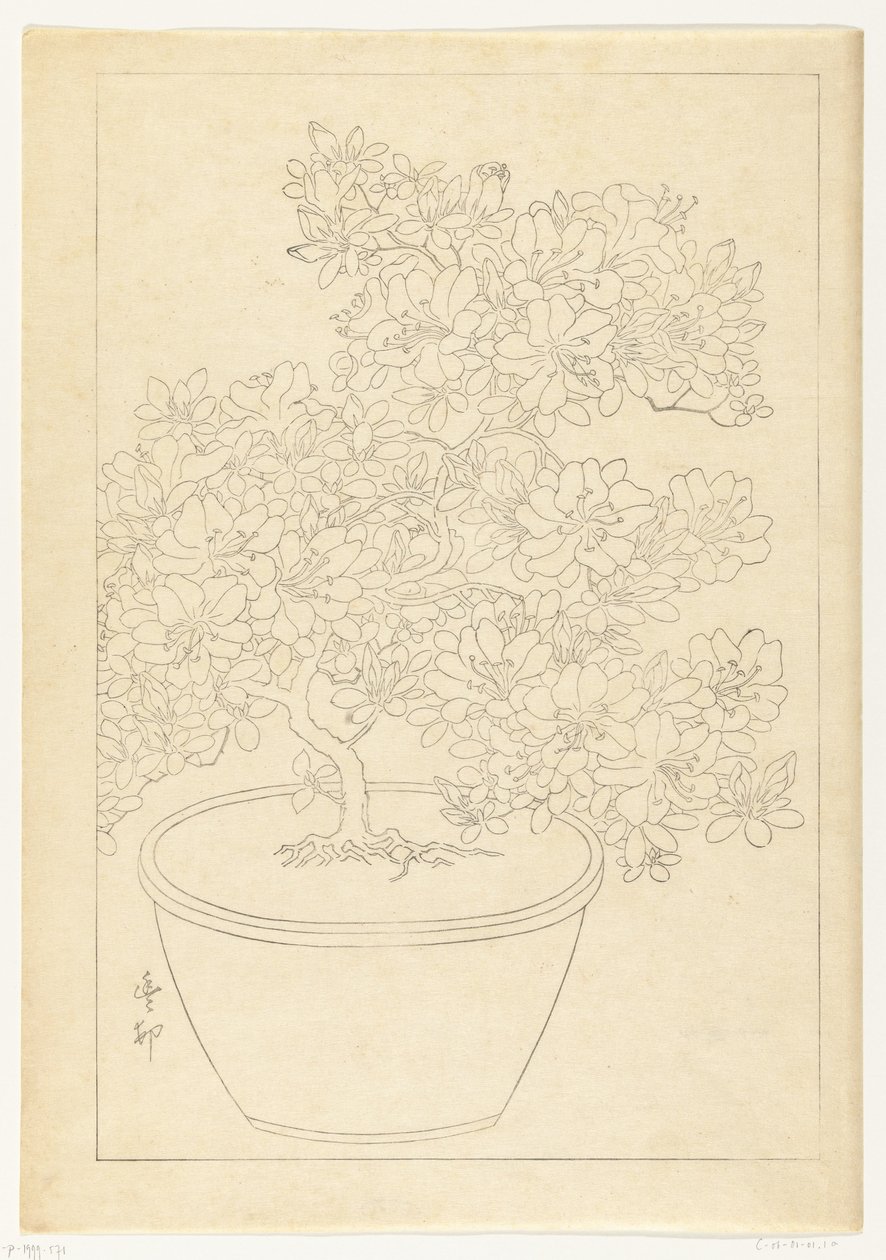 Flor de azaléia em vaso(Bloeiende azalea in pot)Ohara Koson(print maker),Maeda,Komatsu Wasakichi(printer) |