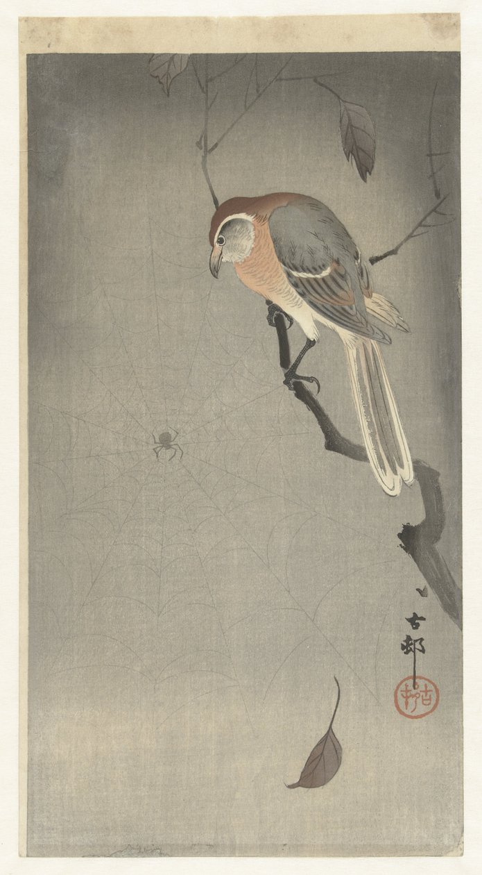 Grito de búfalo e aranha(Buffelkopklauwier en spin)Ohara Koson(print maker),Matsuki Heikichi(publisher) |