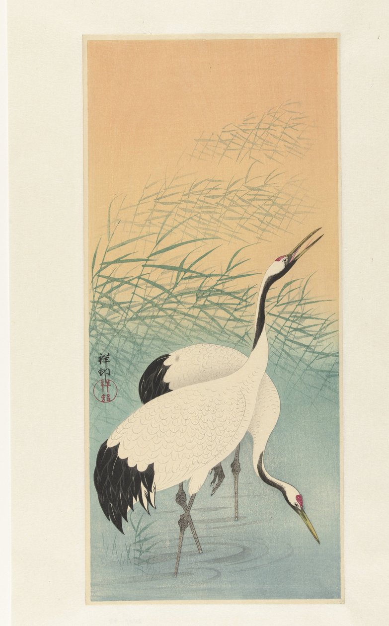Duas gruas(Twee kraanvogels)Ohara Koson(print maker),Watanabe Shôzaburô(publisher) |