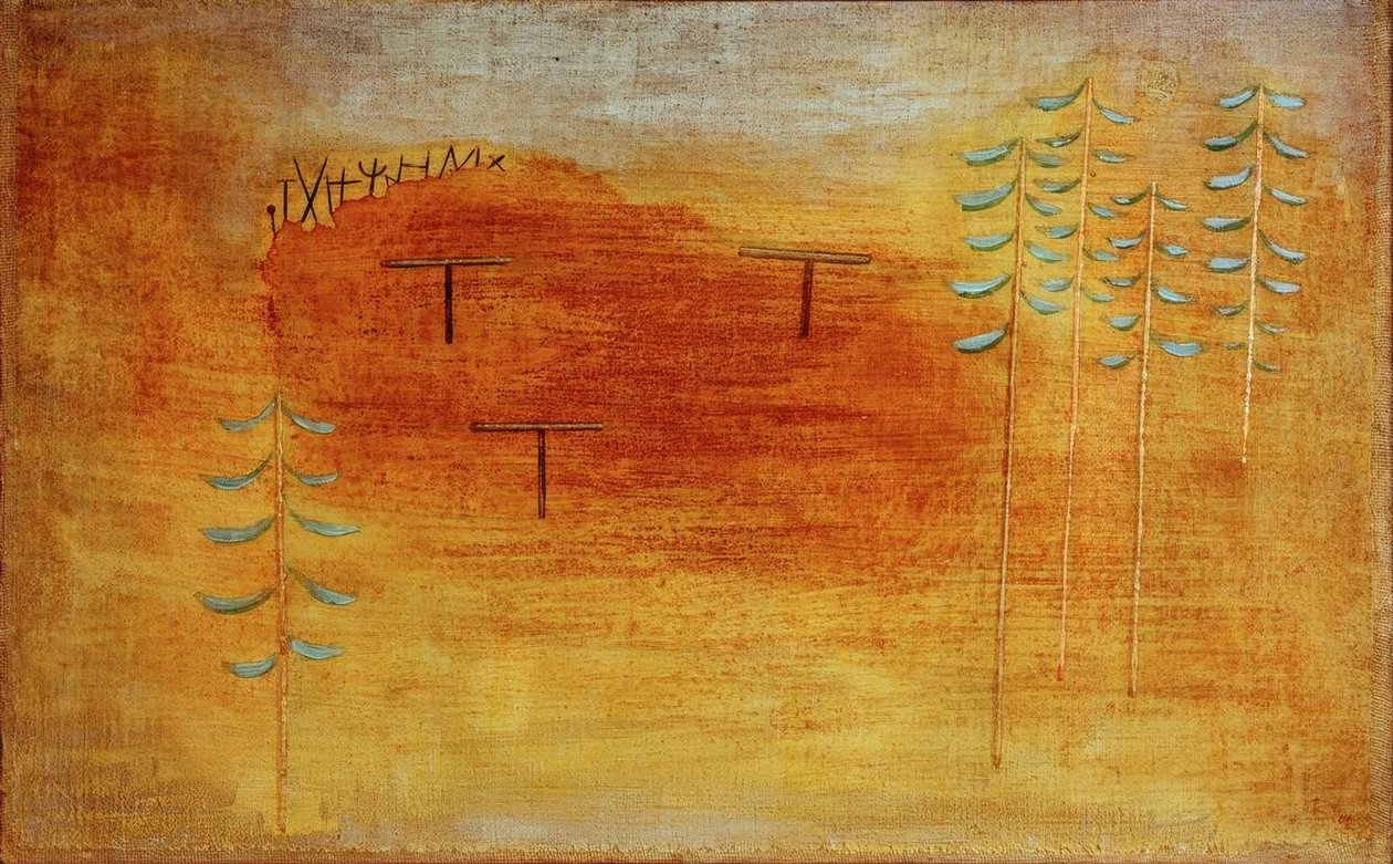 Magia de peixe O peixe dourado Principais e vias de circulação Senecio (Baldgreis) branco polifônico New Angel de 1920 Limites da razão, 1927. Vista de Kairuan veleiros Castelo e sol Balão vermelho, 1922. Fantasma de um gênio Terras Baixas Jardim em St. Germain, o bairro europeu perto de Tunis. 1914 Anjo traz o desejado